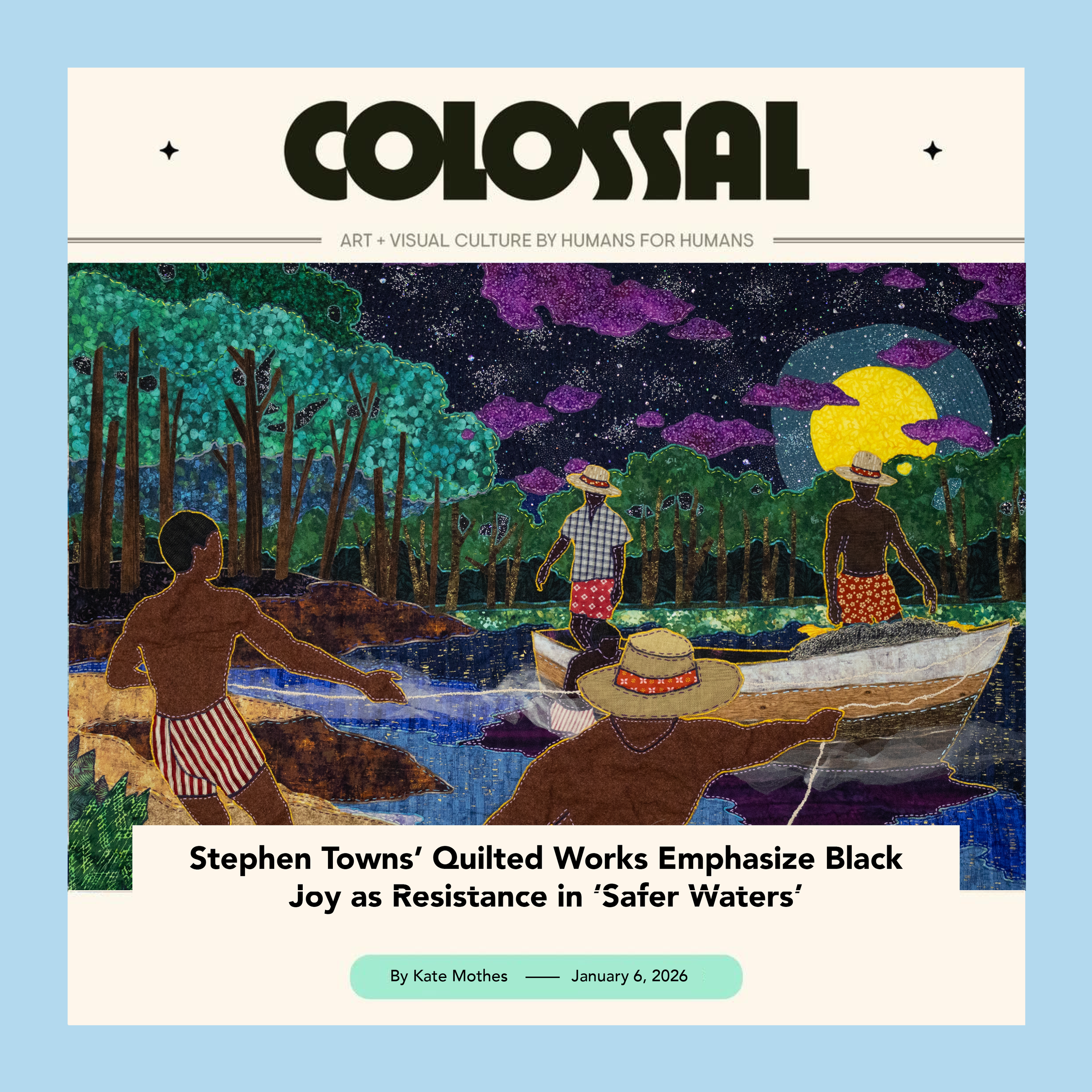 “Towns examines the nature of not only relaxation but escape, celebrating the vibrancy of Black joy despite a period of unabashed oppression toward people of color. He emphasizes child-like innocence, togetherness, and leisure as a form of resistance.” — Kate Mothes for Colossal